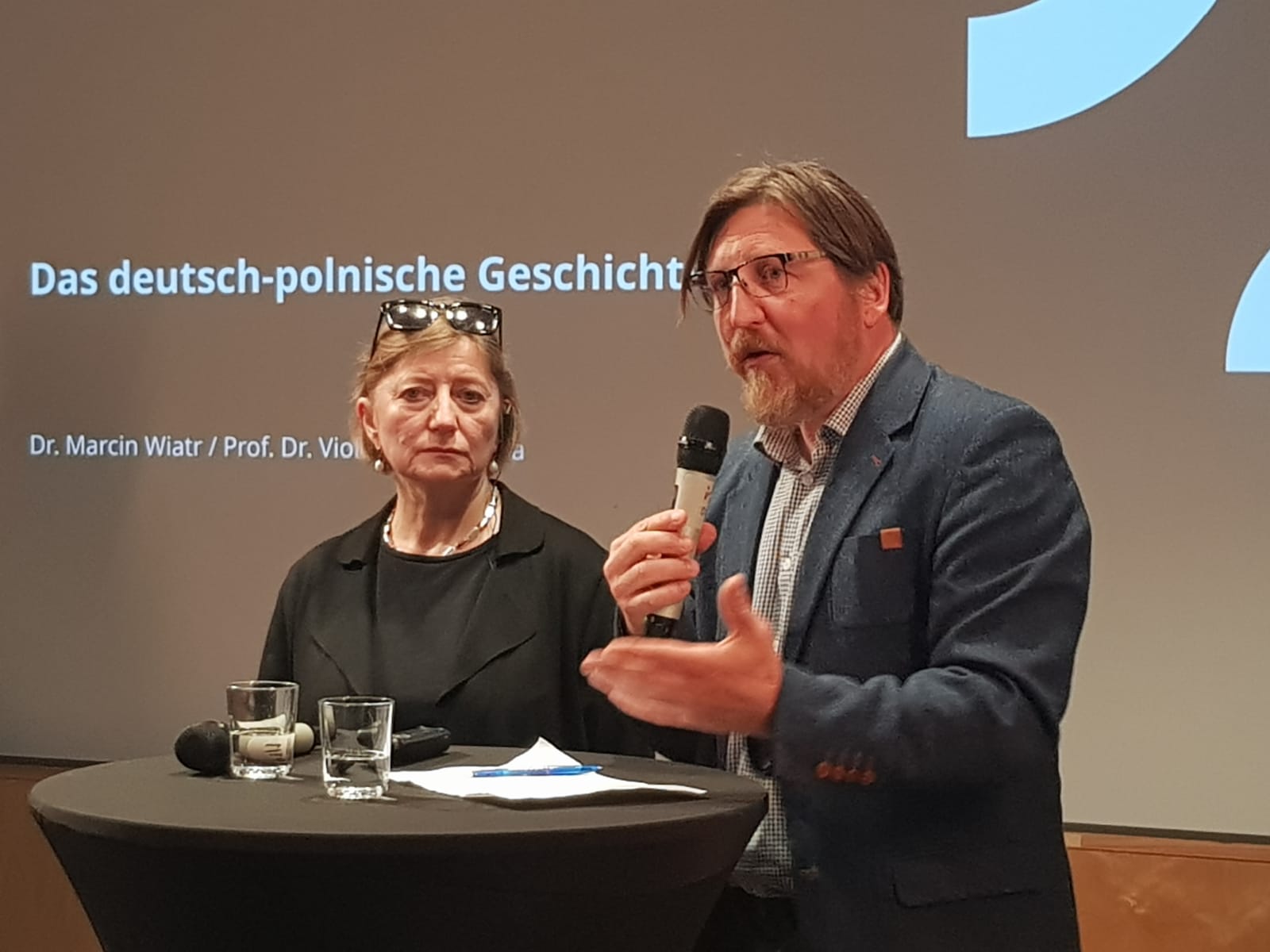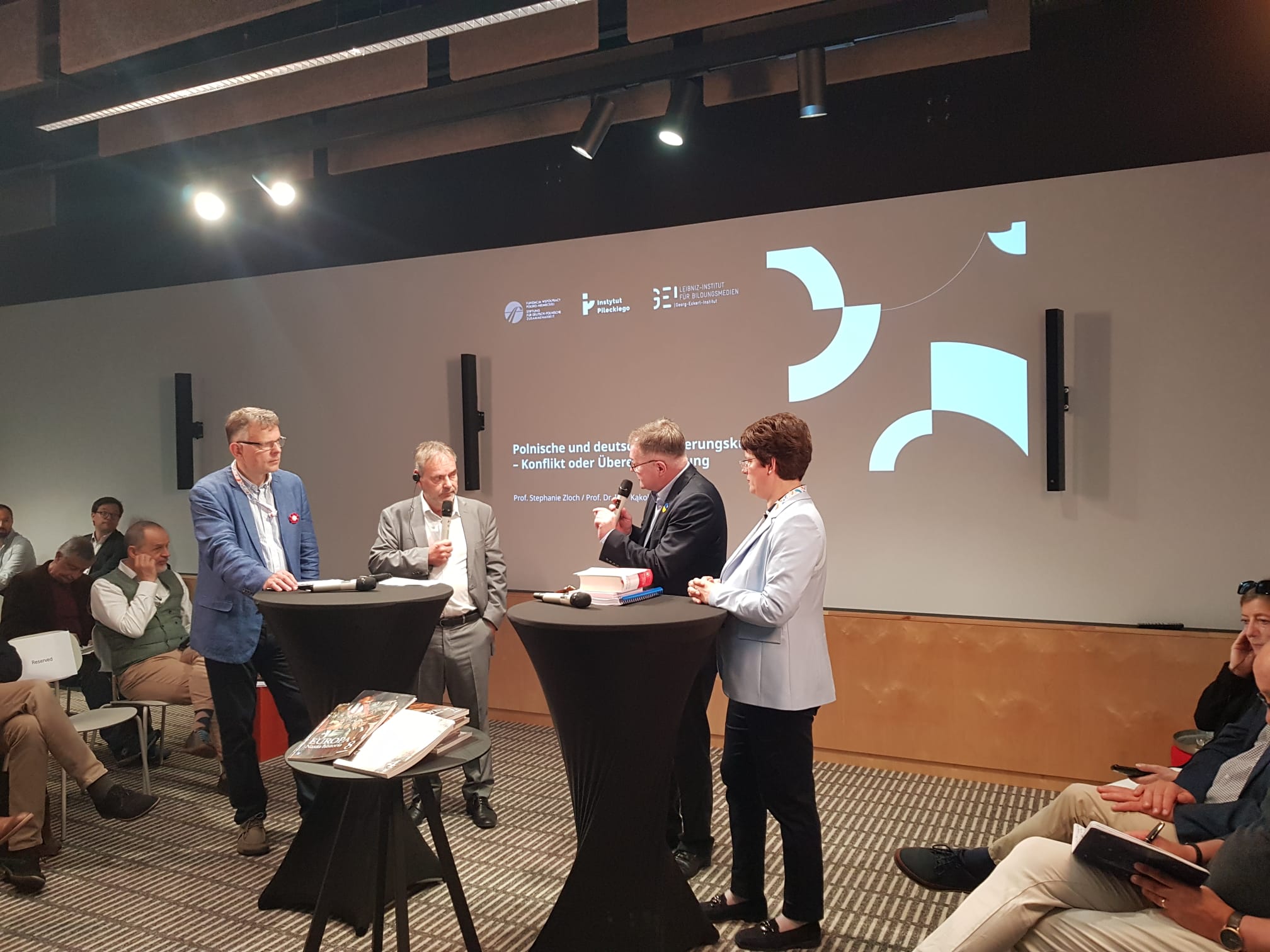 Pierwszy blok panelowy: „Polskie i niemieckie kultury pamięci – konflikt czy porozumienie” z udziałem prof. dr. hab. Igora Kąkolewskiego (Centrum Badań Historycznych PAN w Berlinie) i dr hab. Stephanie Zloch (TU Drezno). Prof. Kąkolewski zwrócił uwagę na kluczowe pytanie: czy historię Polski należy definiować wyłącznie jako historię Polek i Polaków, czy raczej jako inkluzywną historię obywateli polskich, obejmującą wszystkie grupy etniczne i językowe. Taka szersza definicja pozwala m.in. lepiej zrozumieć zagadnienie ofiar nazizmu – obywateli polskich – i niemieckiej okupacji Polski w czasie II wojny światowej. Stephanie Zloch zauważyła m.in., że aktualnie większa uwaga poświęcana Ukrainie czy Białorusi budzi coprawda zrozumienie, ale może sprawić, że tematy polskie zostaną zaniedbane.